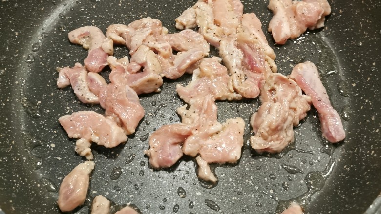 9. 起油锅 放入腌好的肉片 小火翻炒
