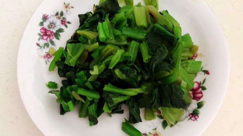 3. 把焯好的菠菜捞出来攥出水份,切成小段