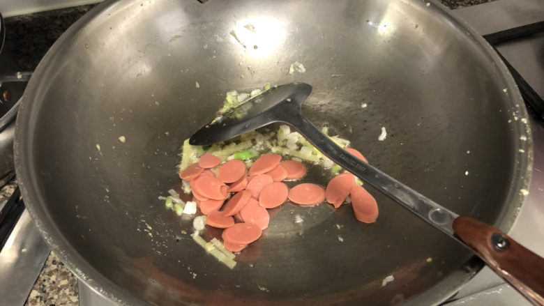 13. 炒鸡蛋留底油,小火,加入葱白姜末煸香