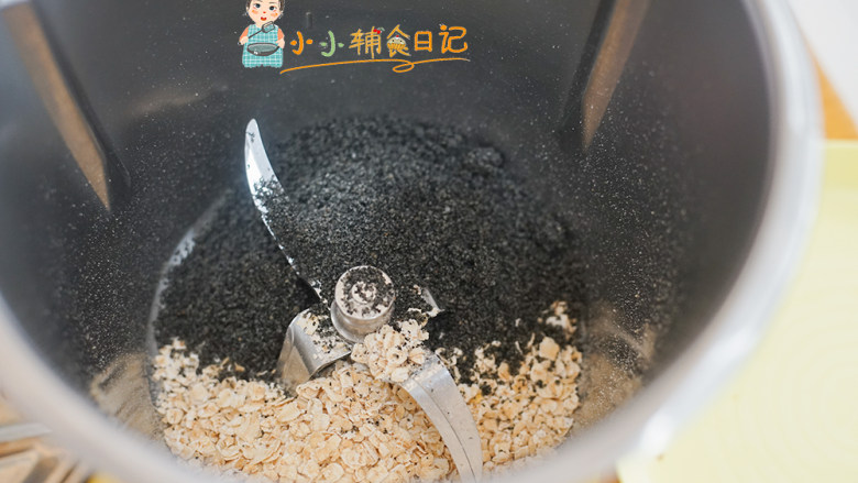 1. 破壁机里放入炒香的芝麻、即食麦片