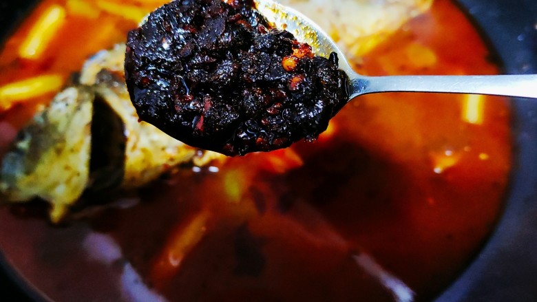 8. 煮开后加入一勺豆瓣酱