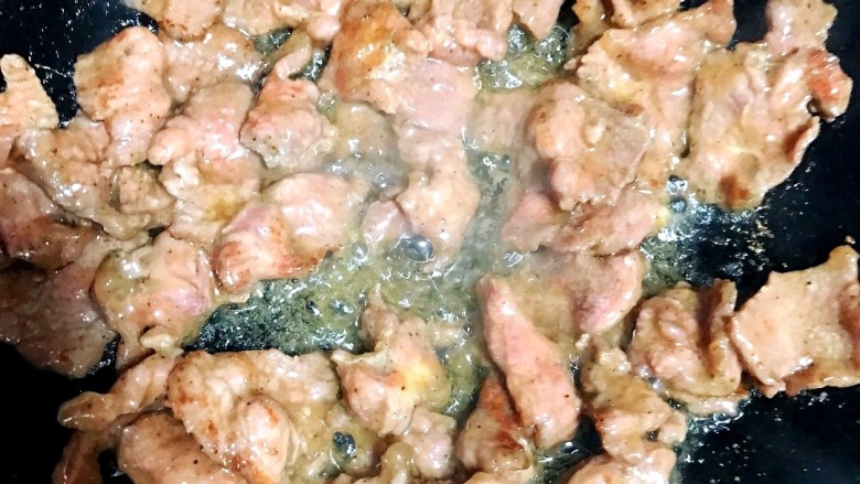 10. 起锅烧油,把味好的肉放入锅中翻炒。