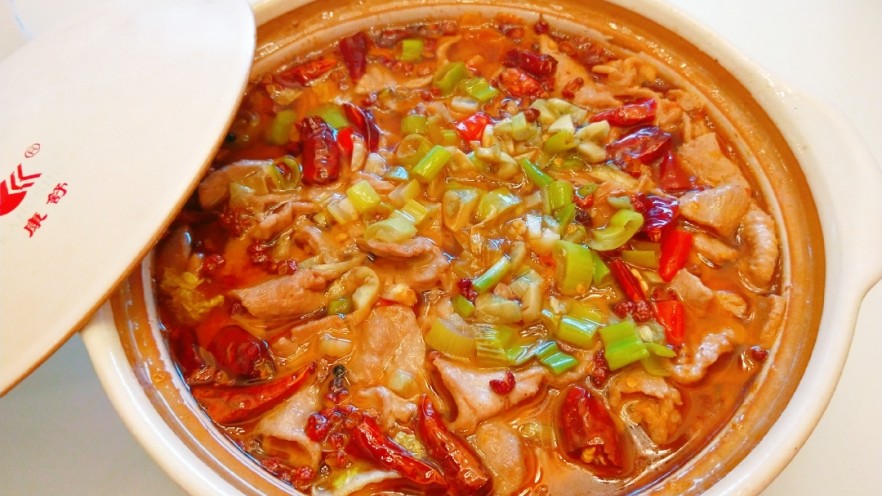 5. 在炒酸辣白菜,泡椒,炒好倒入砂锅。