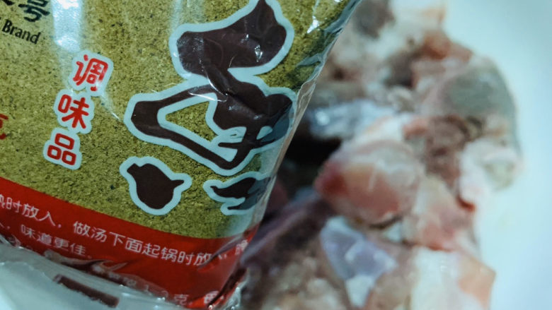 11. 空气炸锅里铺油纸,将腌好的排骨,一块块夹入摆好,先200度,8分钟炸;