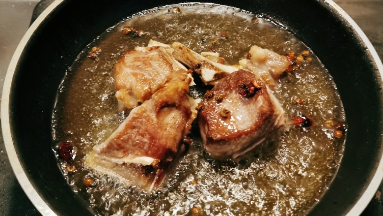 7. 待一面有了焦黄色 翻另一面继续炸制