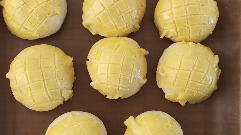 19. 放入烤箱选择发酵功能,放入一碗温水,发酵至1.5-2倍大,发酵好后取出,烤箱180度预热5分钟,放入面包烘烤20分钟,烘烤10分钟时加盖锡纸,防止上色过深
