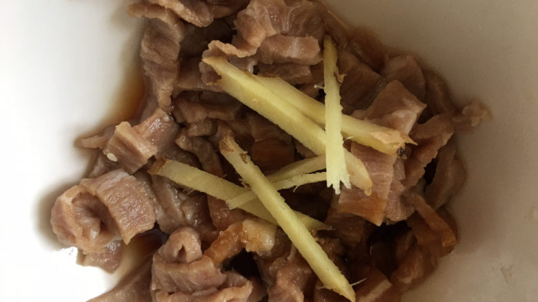 3. 牛肉切丝或则片然后浸泡去血水去腥,牛里脊最佳