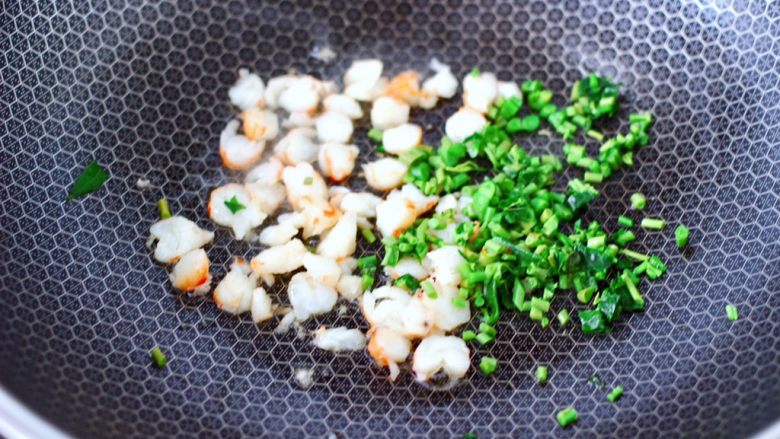 5. 捞出沥干水分后,用刀切碎,虾尾最后留着点缀饭团。