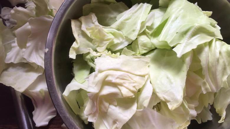 2. 然后把包菜去掉老梗用手撕成片,大小可以根据自己的喜好来,但是不要太大也不要太小