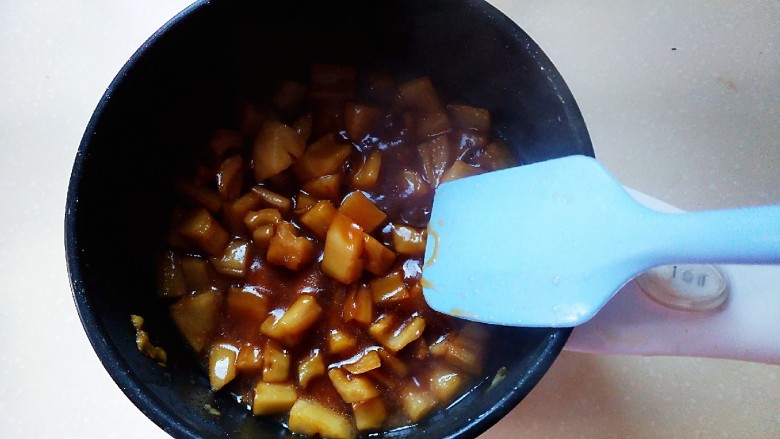 13. 炒到汁液被藕丁完全吸附就可以了。