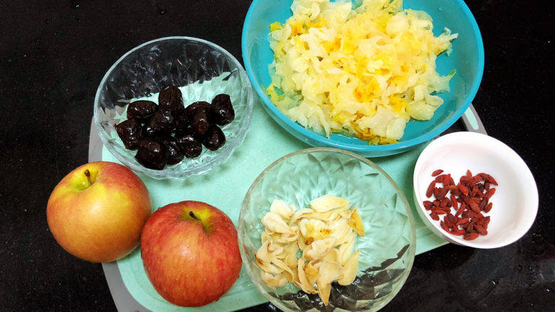 银耳是一种极其名贵的营养滋补佳品,历代皇家贵族均把银耳看作延年益寿之品。现代医学证明,银耳主要的药理有效成分是多糖,银耳多糖是银耳最重要的组成成分,占其干重 60%~70%,同时银耳多糖还是一种重要的生物活性物质,能够增强人体免疫功能,起到扶正固本作用。 银耳和燕窝均为滋补之品,但燕窝价格昂贵,而银耳无论颜色、口感、功效都与燕窝相似,价格便宜,因此被称为“穷人的燕窝”。 今天阿晨就为大家奉上一道简单的银耳甜品~苹果银耳红枣汤。感兴趣的小伙伴们一起来看看吧😄