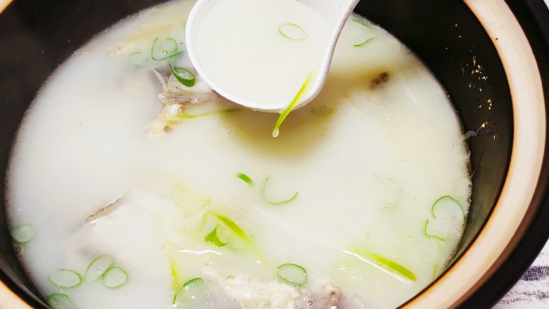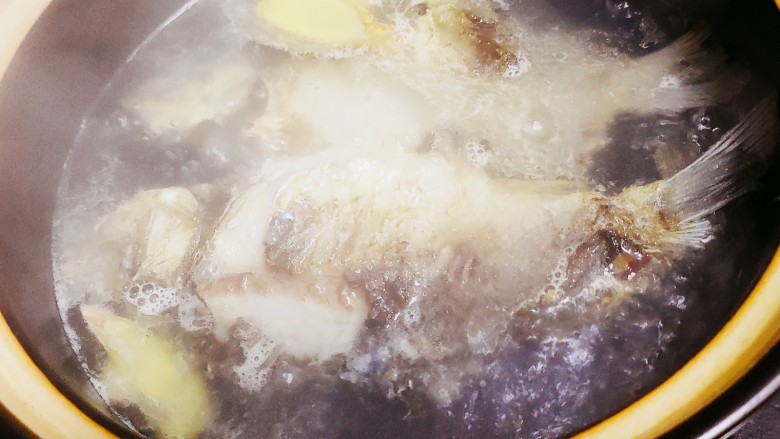 10. 加入煎好的野生鲫鱼,大火煮汤汁