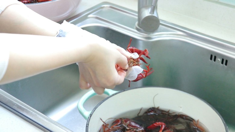 1. 将小龙虾虾线去除,清洗干净