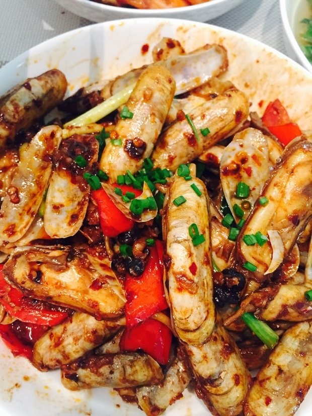 4. 焯水后的蛏子全开壳了,食材比较新鲜。
