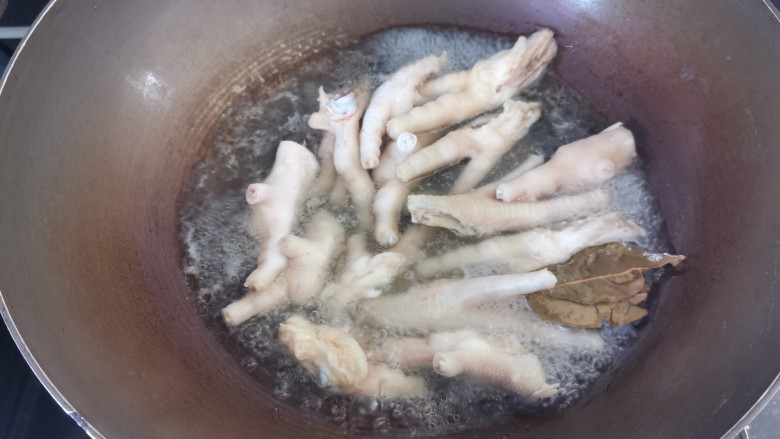 7. 锅里加入清水,加入料酒,生姜,香叶沸水煮3分钟