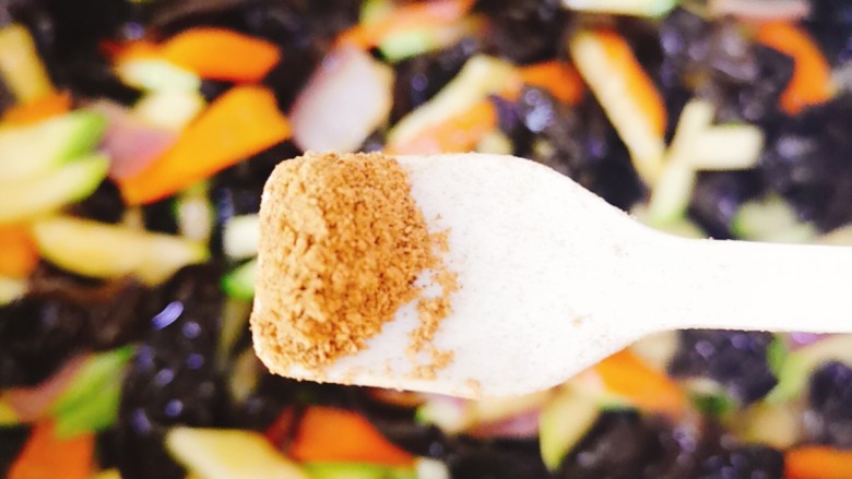 3. 木耳提前泡发,撕成小朵,胡萝卜,青红椒,洋葱切片备用