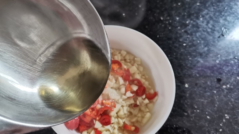 11. 蒜末小米辣放入碗中,淋上热油