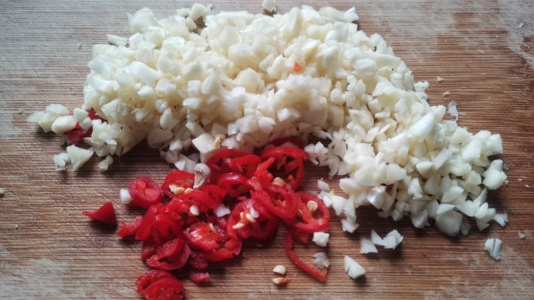 15. 锅里加入适量的油,油热倒入蒜末小米辣炒出香味