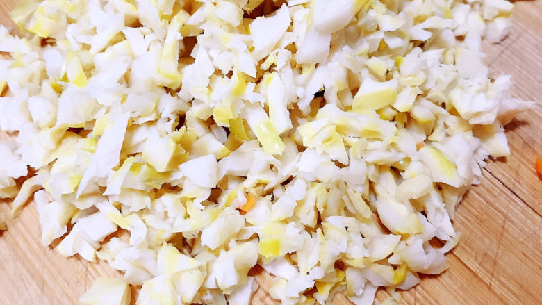 7. 黑木耳泡发后去跟去杂质,切成小粒