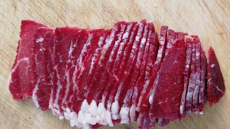 2. 牛肉顶丝切片。