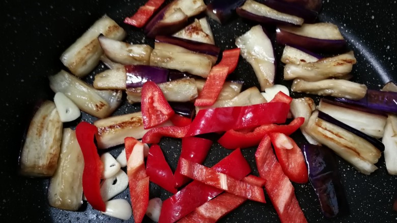- 茄子放入一小勺盐拌匀腌制,烧出来颜色漂亮,软软的好吃还省油