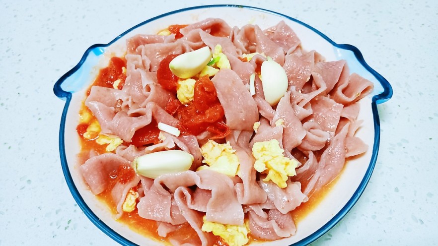 西红柿炒鸡蛋拌火龙果手擀面