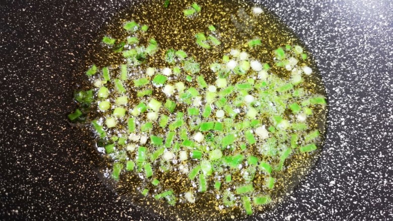 13. 炒锅内倒适量的食用油烧热,下入葱花炒香。