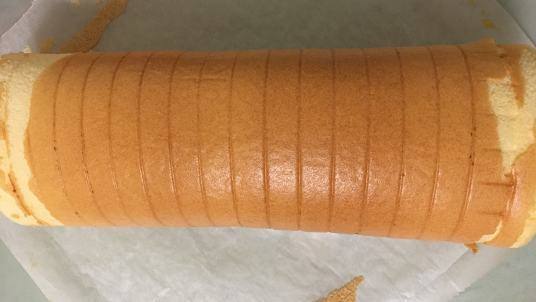 18. 将红薯泥铺在蛋糕卷上;