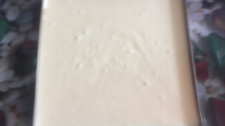 18. 翻拌好的蛋糕糊轻轻倒入28*28方盘模具里,用抹刀抹匀。