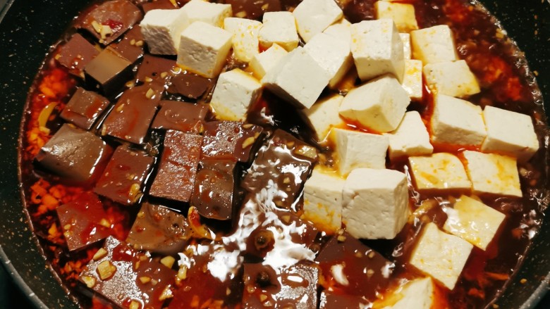 猪血也叫血豆腐 猪血对防治缺铁性贫血有帮助 含铁量较高 易被人体吸收利用 和豆腐炖在一起 形成双色豆腐块 口感软软的 多汁入味。