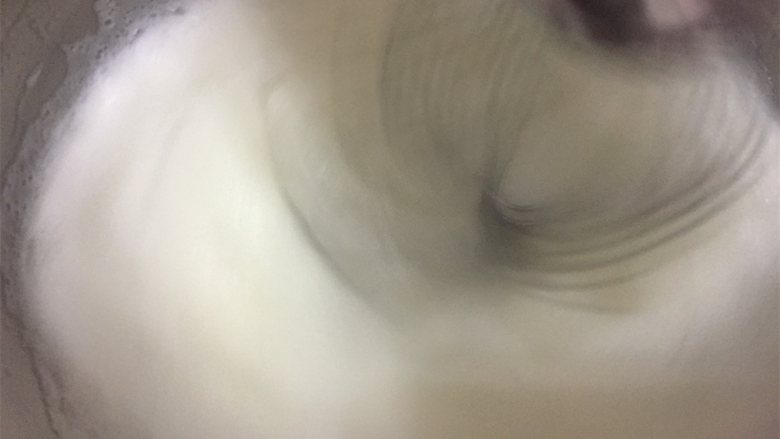 8. 我的手持打蛋器其中一个打蛋头坏掉了,这次就借助厨师机来打发蛋清吧,由于蛋清相对于厨师机的容量来说还是太少,打蛋网几乎够不着蛋清,所以最开始的半分钟我用了高档位,快速把蛋清搅打起来。