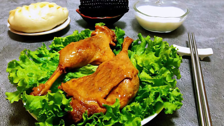 11. 鸭腿炖至汤汁粘稠放入味精提鲜入味即可出锅享用