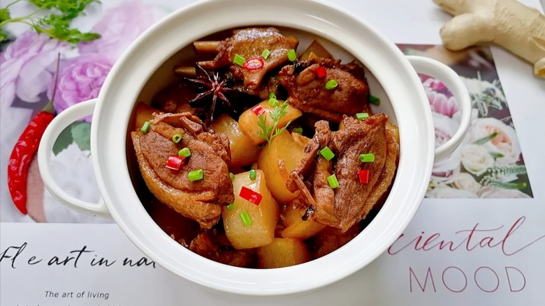 17. 拍上成品图,一道美味又营养的萝卜炖鸭肉就完成了。