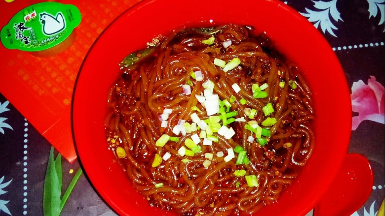 7. 将红苕粉丝放入汤底中小火煮进味。