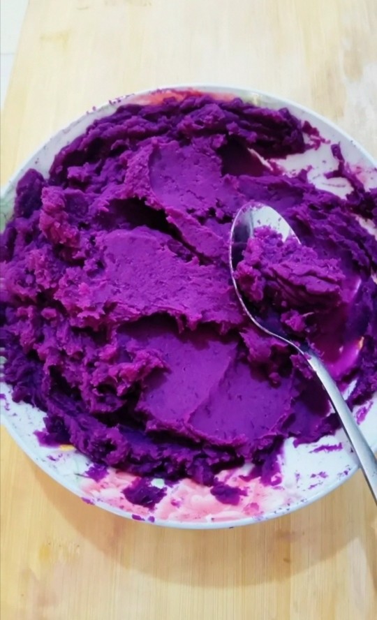 - 紫薯切片蒸熟的快,面团醒发原先两倍的大即可。