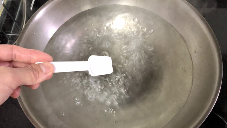12. 青菜焯水:坐锅烧水,水开放半茶匙食盐