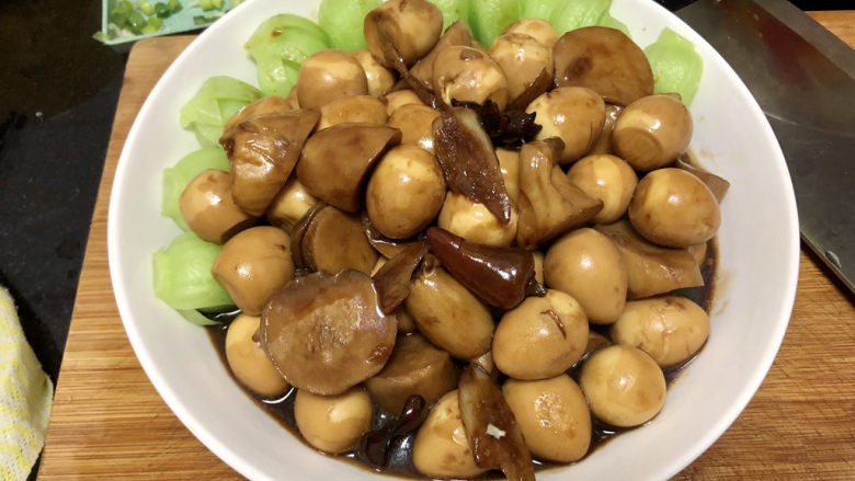 36. 这道红烧鹌鹑蛋,做法简单,咸鲜味浓,鹌鹑蛋Q弹,杏鲍菇柔韧,搭配爽脆的青菜,口感丰富,健康美味。喜欢的小伙伴们快来试试看吧😄