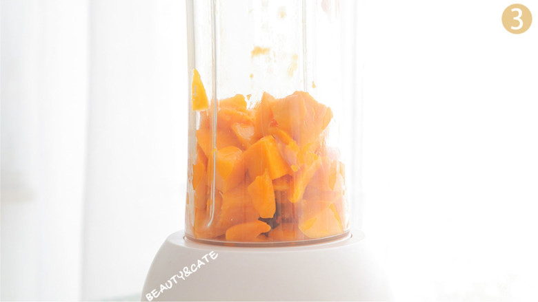 3. 剩余芒果切成丁,取其中200g放入榨汁机中榨成芒果泥