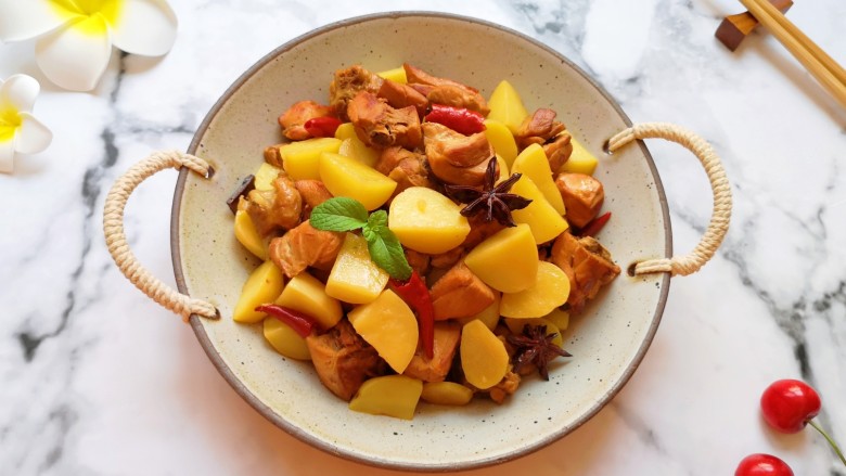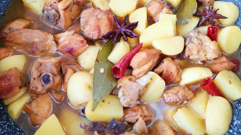 12. 半个小时以后鸡块已经熟了,挑出小葱结不要。