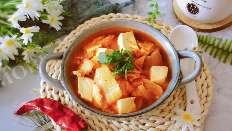 最喜欢吃辣白菜豆腐汤 加入了肥而不腻的带皮五花肉 营养丰富 香辣开胃。