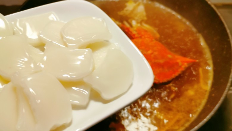11. 烧开1分钟 放入年糕片