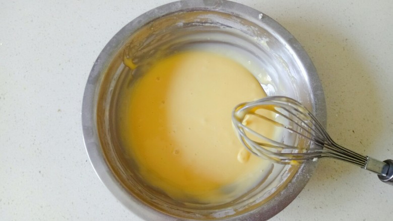 6. 继续用Z 字手法搅拌至蛋黄糊顺滑