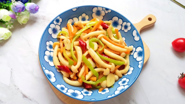 白玉菇搭配青椒胡萝卜简单的做了一道菌菇小炒菜,没想到家人都抢着吃。