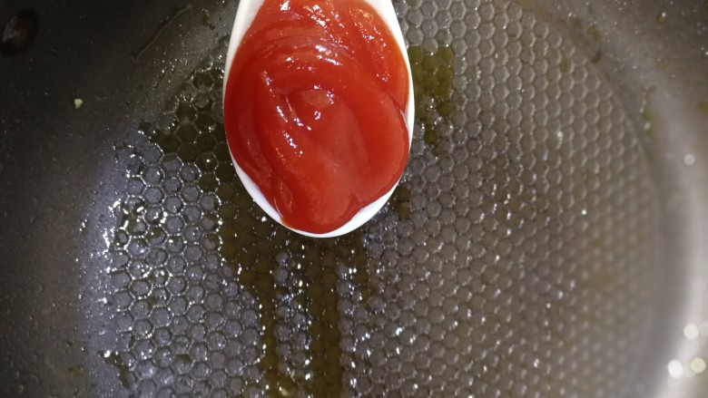 6. 平底锅倒入适量油,油微热放入火腿炒,小火煎。