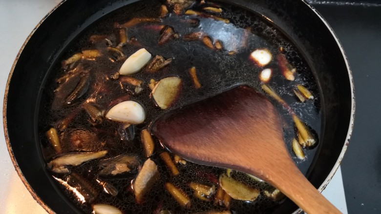 3. 倒入开水后,黄鳝表皮的粘液,就会浮出(有的地方是不去粘液,直接下锅烧的,我过不了这关,喜欢把粘液泡掉)
