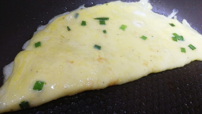 12. 这个蛋液很稀,可以摊很薄的饼。用小火,等边翘起来,就可以翻面了。