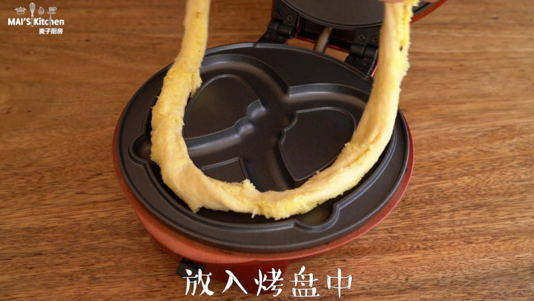 8. 放入烤盘中,温度调至中高温(手表两点钟的位置),烘烤4分钟。(剩余的可以连续制作,烘烤时间也可以根据自己喜好的上色程度延长烘烤时间