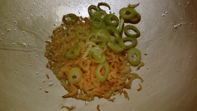 7. 起油锅 油热后放入小虾皮 炒出香味