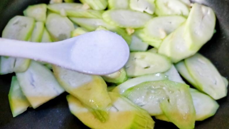 9. 蒜爆香倒入丝瓜