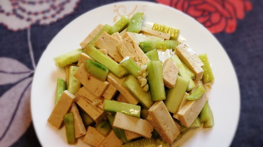 13. 放入素鸡块和黄瓜条,拌匀。